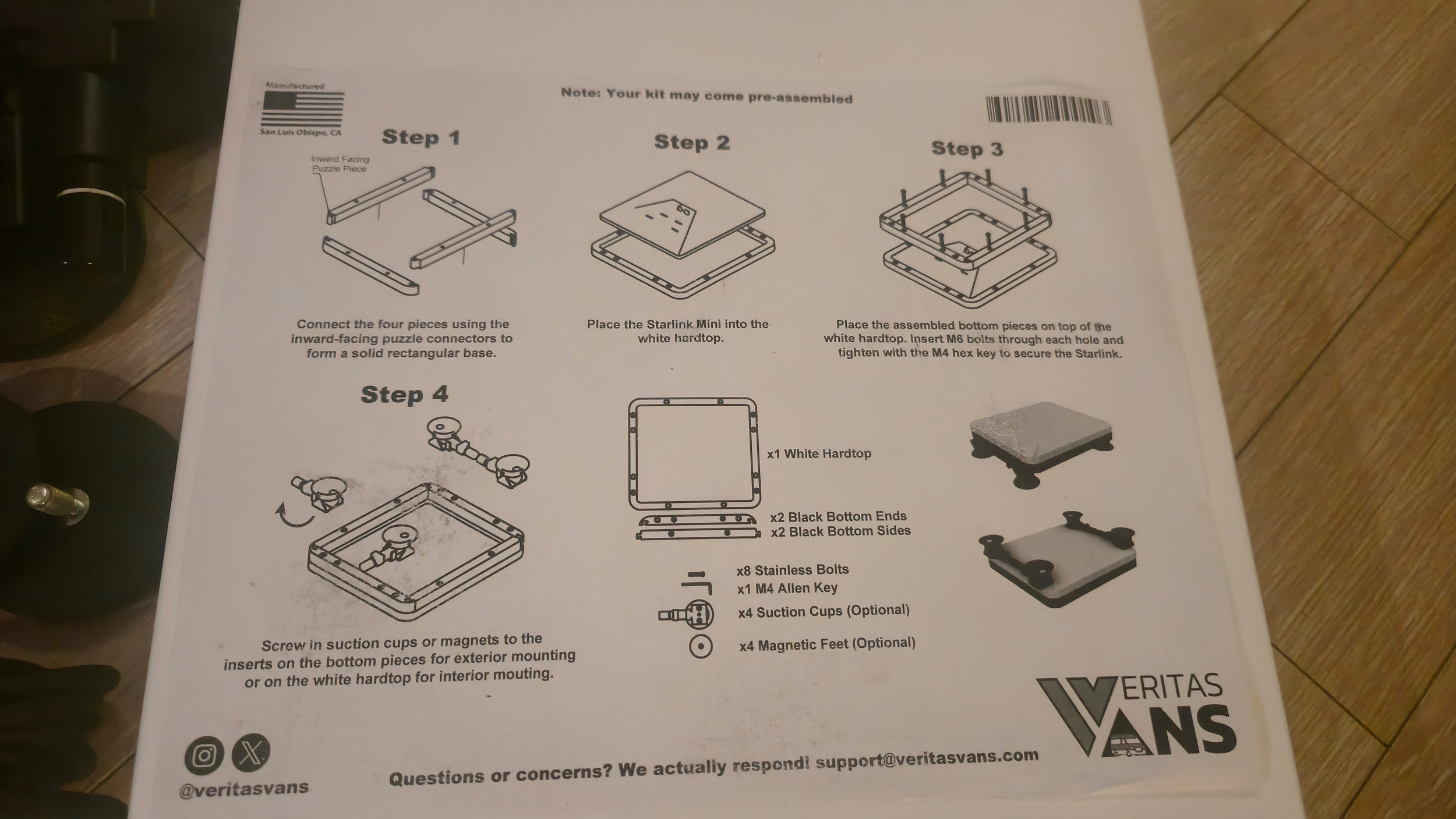 - Starlink Mount Suction Cup Attachment (4 Pack) – $59.99 / https://veritasvans.com/product/starlink-mount-suction-cup-attachment